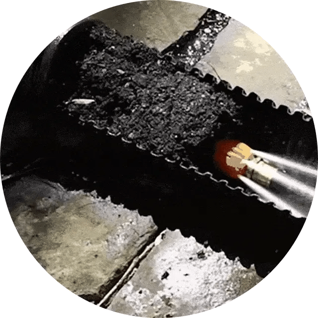 Avec une buse frontale et 6 buses arrière, le JetMaster Pro™ déloge facilement les blocages tels que :